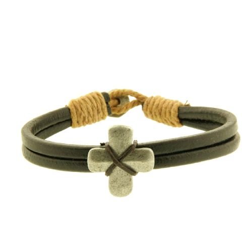Cross Bracelet with Rugged wrapped onto a double wrapped thick leather cords. Read more customer reviews ...